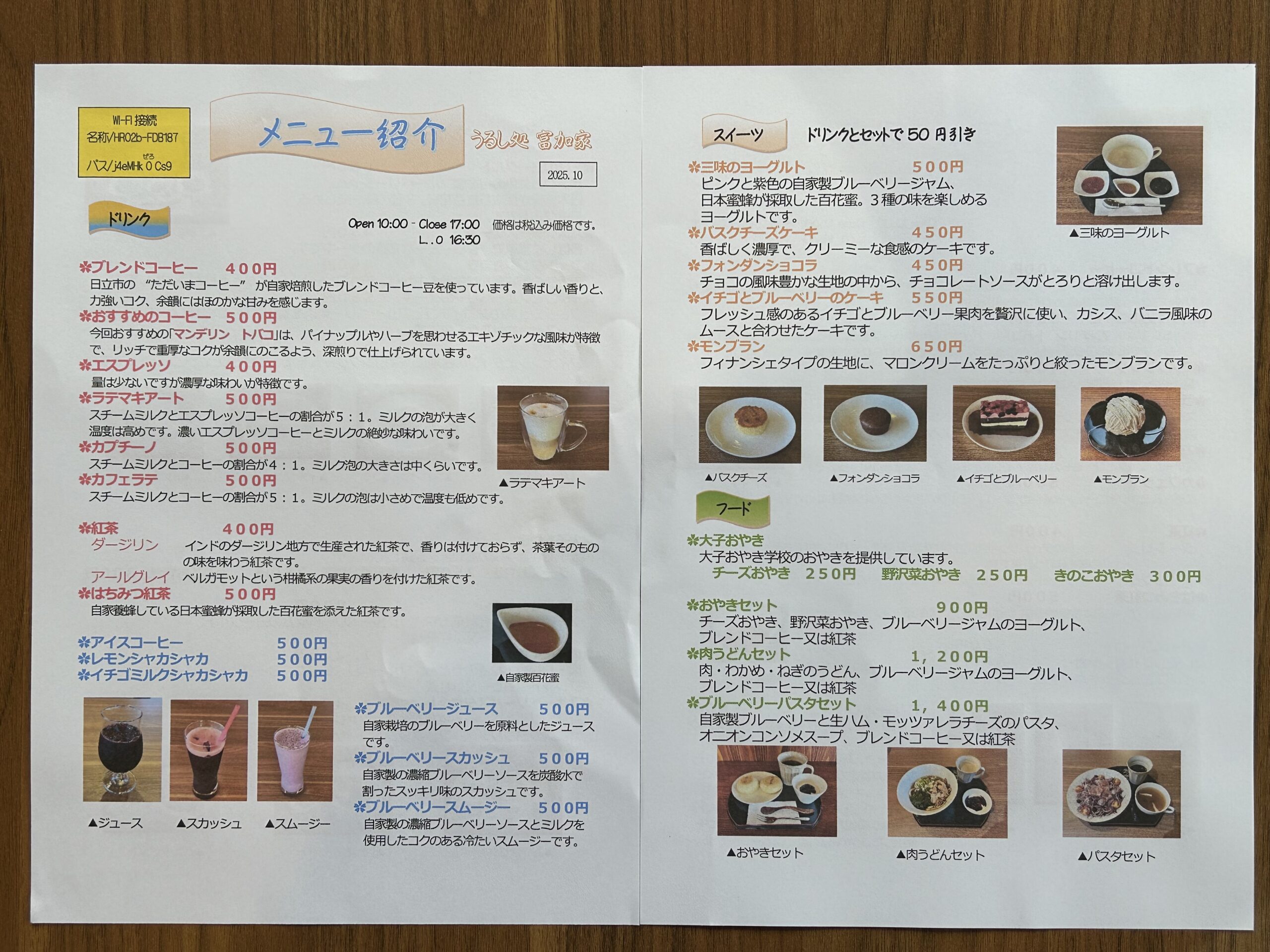 10月からのカフェメニュー紹介 お知らせ 2025.10.25 10月から一部メニューを変更しました。メニュー表をご覧下さい。 また、コーヒー類は、茨城県日立市の「ただいまコーヒー」が自家焙煎したコーヒー豆を使用しています。おすすめコーヒーは、「マンデリン トバコ」です。